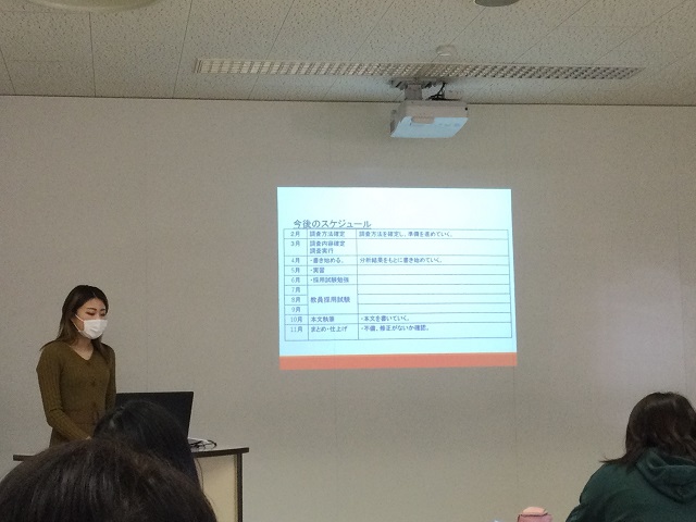 2021年02月17日 学部・学科 2020年度 卒業論文研究中間報告会が開催されました! 養護教育学専攻では、卒業論文研究中間報告会が開催されました。 養護教諭の職務について、SNSについて、文学作品から心について考えるなど、大変幅広いテーマについて研究が行われており、養護教育学専攻の先生方々から様々な視点からのご指導をいただくことができました。 新型コロナウィルス感染症の感染拡大防止のため、他学年の学生の参加はできませんでしたが、発表者同士の情報共有のための、大変貴重な機会となりました。