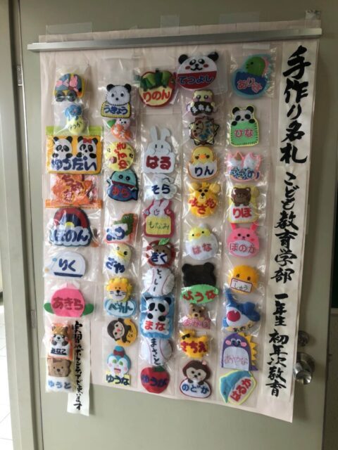 また、実習やボランティア活動等でコミュニケーションツールとして活用する「手作り名札」(写真1)を製作しました。