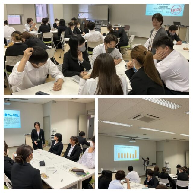 6月2日(金)「学校保健(学校安全を含む)」で津市教育委員会事務局人権教育課の奥村浩子先生、石山愛先生に「外国につながる子どもへの支援」について授業をしていただきました。ここでは、養護教諭、小学校教諭、幼稚園教諭・保育士をめざす学生が一緒に学んでいます。