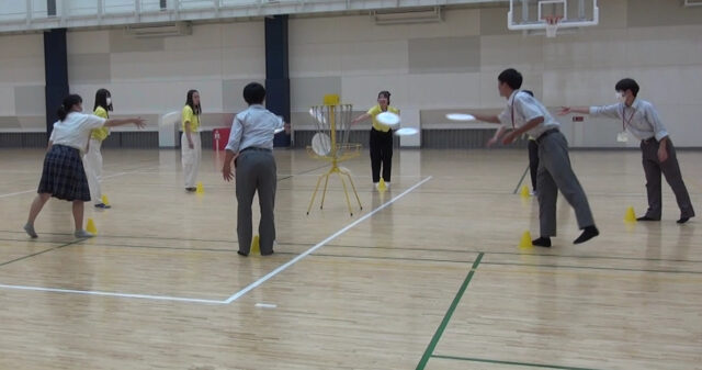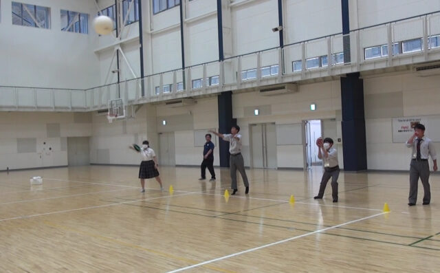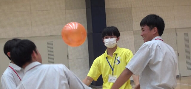 まず、いろいろな形状のボールを投げ、その違いを体感しました。そのあとはボールを使ったゲームを行いました。在学生と参加者が一緒にボール遊びを楽しんでいました。