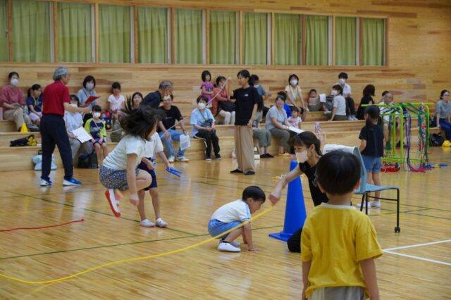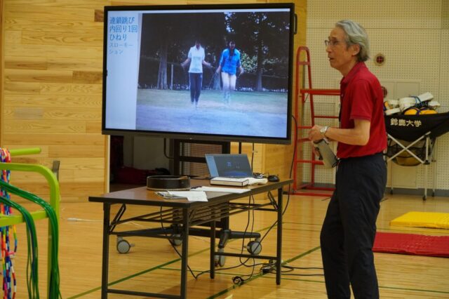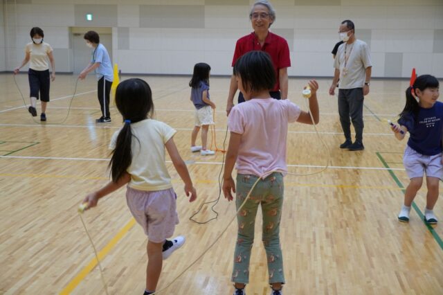 2023年09月26日 こども教育学部小学校教諭コース幼稚園教諭・保育士コース養護教諭コース 公開講座「楽しい縄跳び運動」開催しました。 令和5年9月16日(土)に、公開講座「楽しいなわとび運動」を開催しました。講師はこども教育学部川口啓先生が務めました。 当日は幼児から大人まで34名の皆さんに参加していただきました。参加者からは「変わったなわとび体験ができて楽しかったです。運動は苦手なのですがこういった講座で教えてもらえると楽しめてよかったです。」「こどもと一緒に縄跳びを普段していなかったのでこういった機会に一緒にできて楽しかったです。何十年かぶりの縄跳びでした。」といったお声をいただきました。