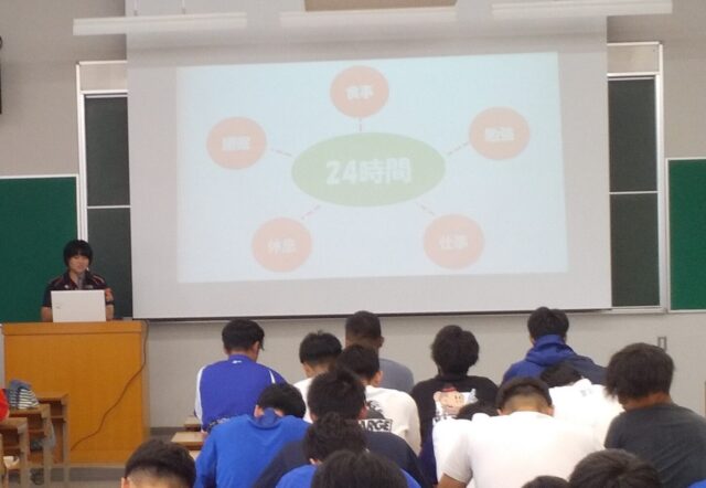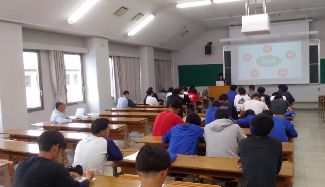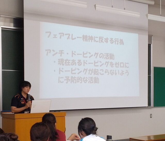 2023年10月04日 グローバルコミュニケーション領域ビジネス領域国際地域学部 重量挙げ日本記録保持者の山本真鼓さんが講義を行いました 10月4日(水)の専門スポーツ演習の授業で、山本さんが講義を行いました。 山本さんは、重量挙げ女子64キロ級の日本記録保持者であり、 現在、大学職員兼選手兼大学ウェイトリフティング部コーチとして活躍しています。 講義では、山本さんのこれまでの選手生活を基に、 アスリートとして学んだこと、ドーピングについて、海外と日本の違い等の話をされました。