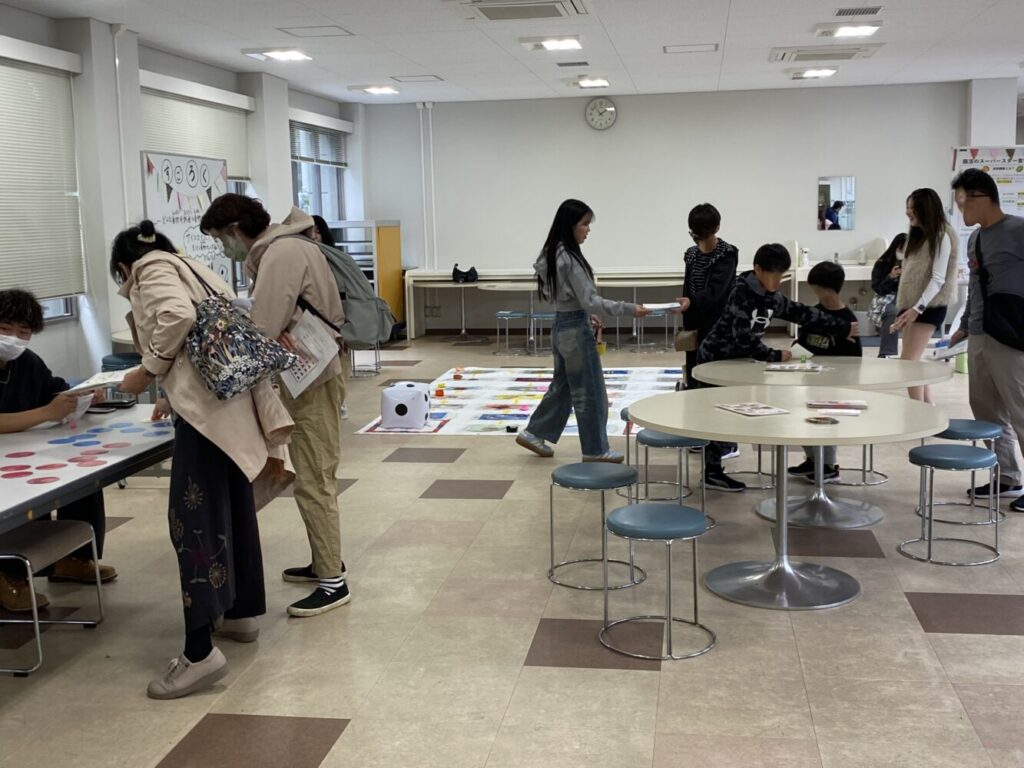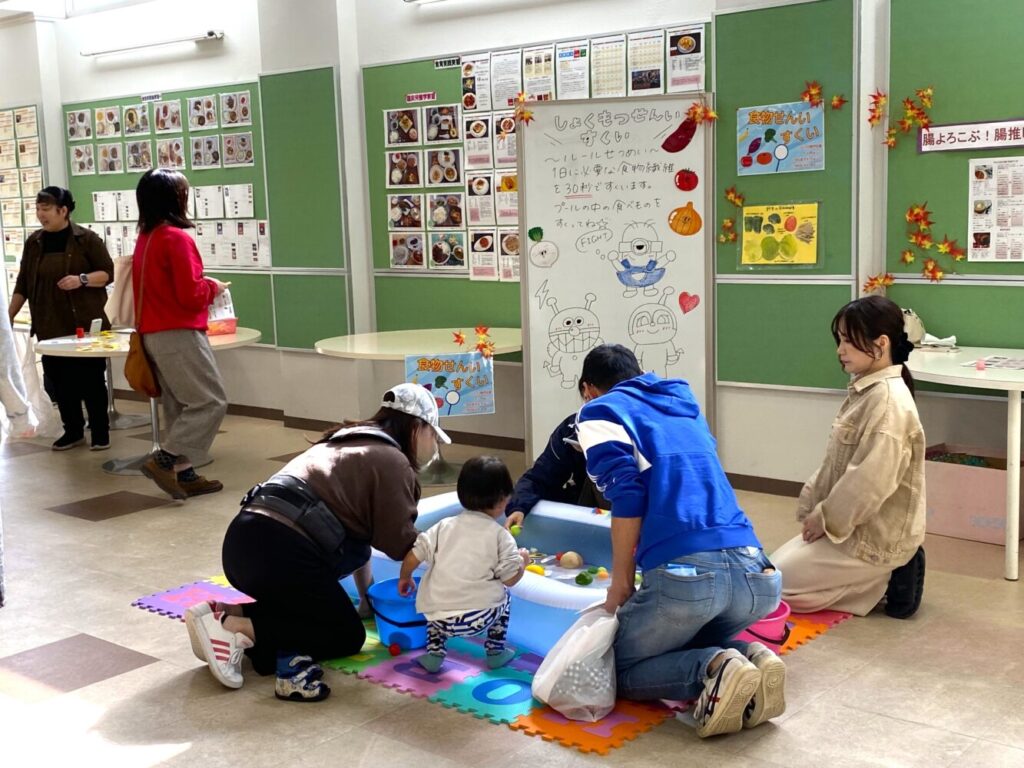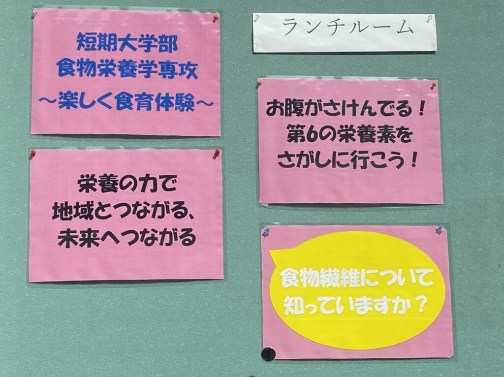 食物栄養学専攻の2年生が「お腹がさけんでる!第6の栄養素をさがしに行こう!」をテーマに栄養教育論実習の授業で手作りをした食育カードやゲームを使い、来場者の方に食育を行いました。また、ポスター展示、リーフレット配布も行い食物繊維の大切さを伝えました。