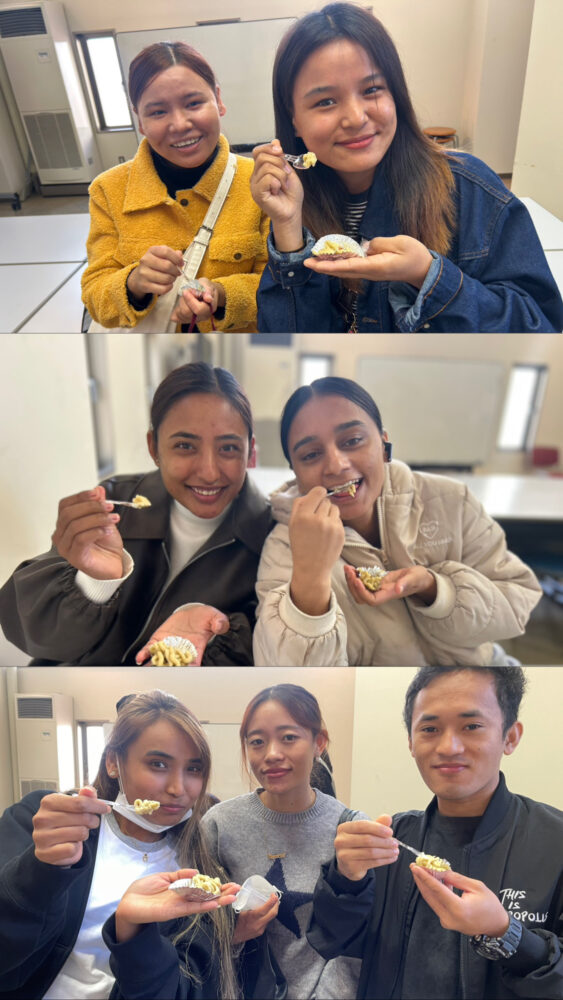 初めてモンブランを食べる学生が多く、楽しく交流することができました。