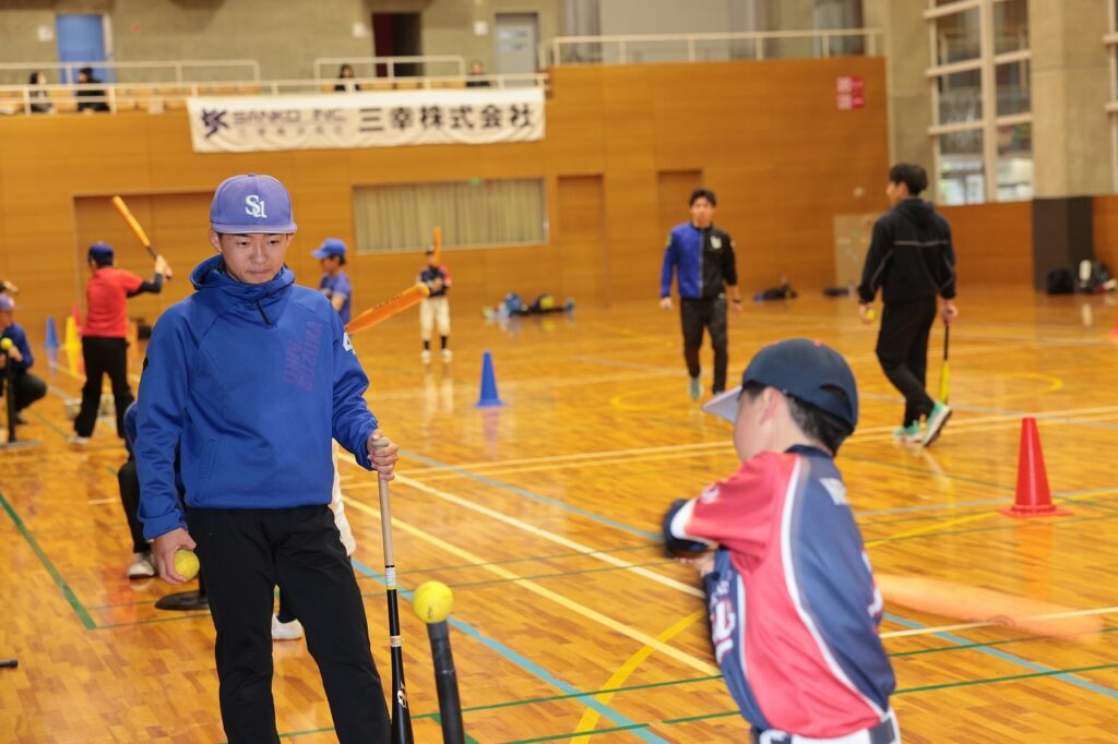 教室では、元中日ドラゴンズの荒木雅博さんによる指導が行われ、トップレベルの指導現場を間近で見ながら、スポーツ事業が地域にもたらす価値や、運営の工夫について理解を深める機会となりました。