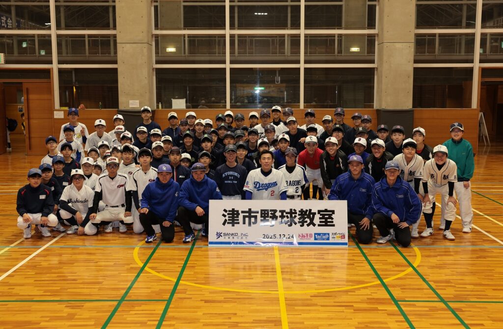 12月24日、津市の安濃体育館で開催された「津市中学生野球教室2025」に国際地域学部の学生が運営スタッフとして参加しました。