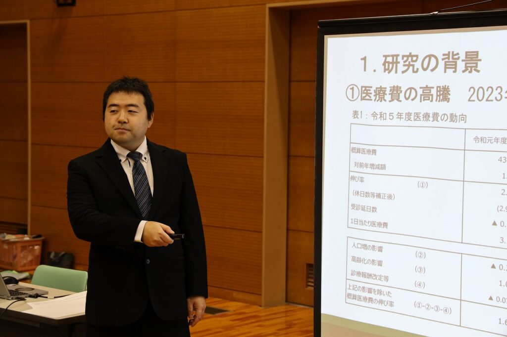 小川さんは「スマートフォンアプリ活用によるウォーキング指導の効果と課題」をテーマに発表し、研究成果を実践現場へ還元しました。小川さんの他に、元中日ドラゴンズ選手であり、順天堂大学大学院在籍の石川駿さんが「野球競技における繰り返される打撃動作が肘関節に与える影響」について発表され、実践と理論を結ぶ講習会として注目を集めました。また、国際地域学部の竹田昌平准教授は「スポーツ指導者に求められる一次救急処置の知識と技術」をテーマに講演しました。