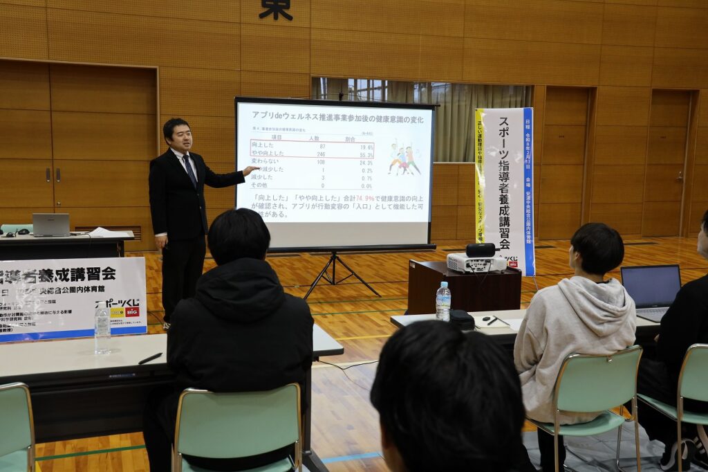 津市内で開催された「スポーツ指導者養成講習会」にて、本学大学院生の小川直也さんが研究発表を行いました。