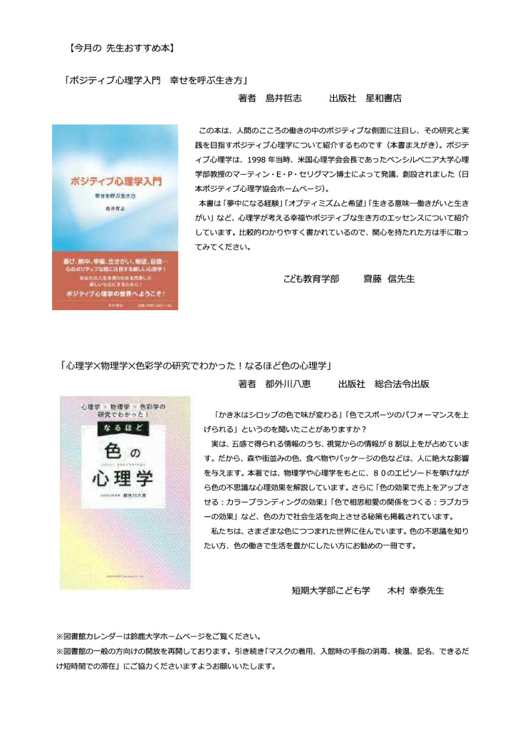 2023年02月01日 お知らせその他図書館 [ 附属図書館 ] 図書館だより2月号を更新しました。 図書館ページからも、ご覧ください。 https://www.suzuka.ac.jp/library/