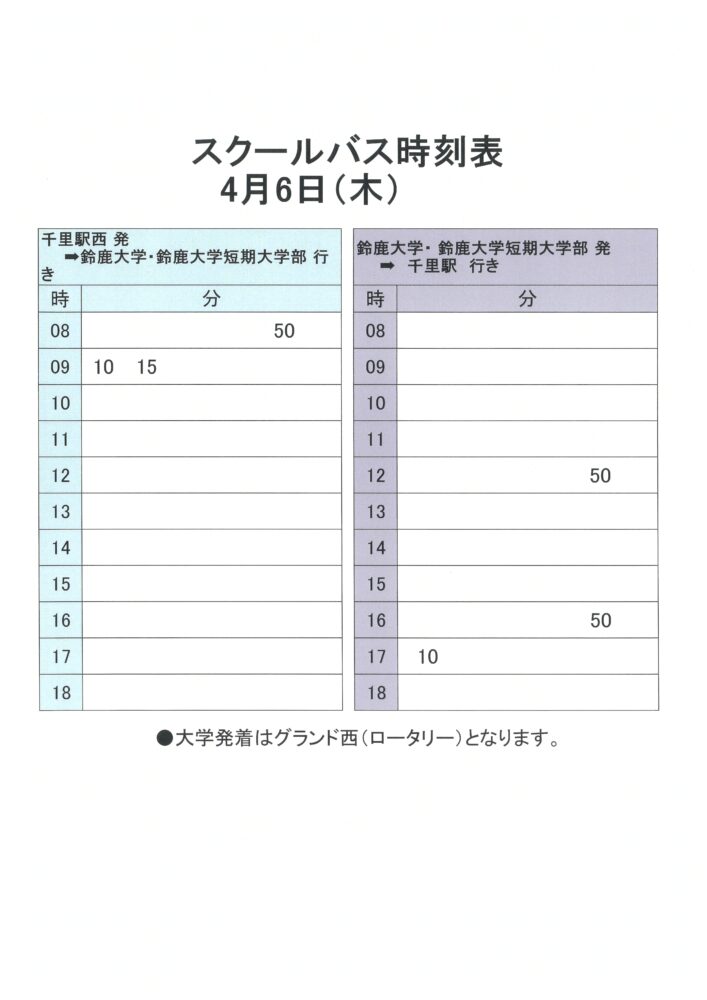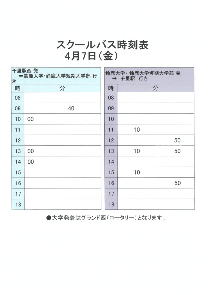 4月5日(水)~7日(金)スクールバスダイヤについて