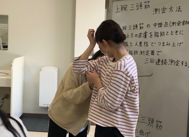 2023年05月17日 お知らせ 栄養士に必要なアセスメントの方法を実践しました! 栄養教育論実習では、栄養アセスメントの技法を身につけるために、適切な身体計測や食事調査、エネルギー消費量の測定方法などを学びます。 今回は身体計測の実践です。 腹囲や皮下脂肪厚、上腕・下腿周囲長、握力などを計測しました。 #鈴鹿大学短期大学部 #すずたん #栄養士 #栄養教諭 #フードビジネス #三重県 #鈴鹿市 #栄養アセスメント #身体計測 #栄養教育論
