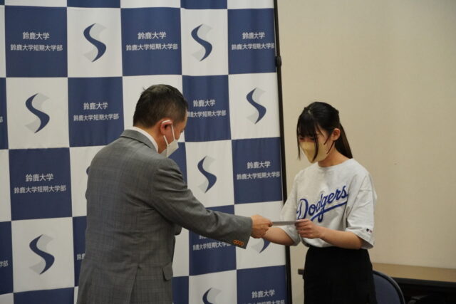 また、藤原幸愛さん(こども教育学部4年生)は、松阪市内での人命救助に対する功績に対して表彰されました。恐れずに人命救助を行う彼女の行為は養護教諭を目指す学生の鑑でした。
