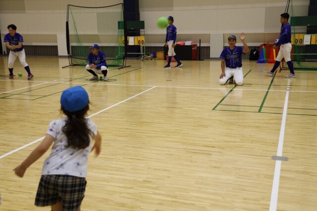鈴鹿大学国際地域学部、田中・竹田ゼミでは、野球界を盛り上げる取り組みとして「野球振興プロジェクト」を実施しています。7月28日(金)、鈴鹿大学体育館に幼児を招き、今期3回目の野球教室を開催しました。今回は、三重県の社会人野球チーム「三重高虎ベースボールクラブ」の松下代表、宮下選手、山之内選手にも特別講師としてお越し頂きました。同クラブの選手、硬式野球部学生からアドバイスを受けながら、投げる、捕る、打つ、走るなどの基本練習後に試合を行いました。野球教室の最後には、スポーツメーカー18社の企業が集まり、設立された一般社団法人野球・ソフトボール活性化委員会より、子どもたちにボールがプレゼントされました。