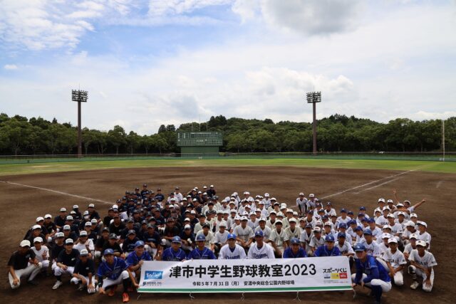 7月31日(月)、安濃中央総合公園内野球場にて「津市中学生野球教室2023」が開催されました。鈴鹿大学にてスポーツマネジメントやスポーツビジネスを学ぶ学生(国際地域学部の田中・竹田ゼミ)が中心となり、運営に参画しました。講師は、元中日ドラゴンズの石川駿様、湊川誠隆様が務められ、参加した約150名の中学生は、熱心に指導を受けていました。大学生は、スムーズな野球教室の運営を心がけ、常に次の展開を考えながら、行動していました。