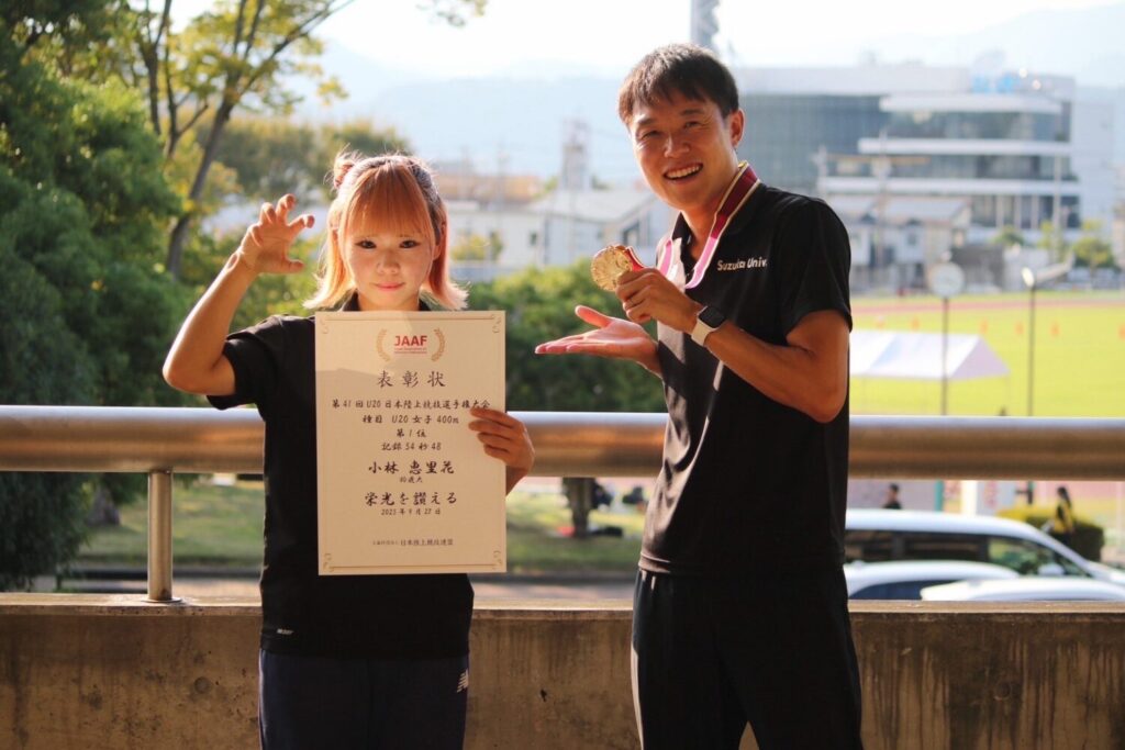 2025年09月29日 お知らせその他陸上競技部 【陸上競技部】U20日本陸上競技選手権で優勝しました 9月27日(土)に静岡県の草薙陸上競技場で第41回U20日本陸上競技選手権が開催され、 国際地域学部・2年小林恵里花が女子400mにおいて優勝しました。 競技結果は以下の通りとなります。 第41回U20日本陸上競技選手権大会 女子400m 第1位 小林 恵里花(国際地域学部・2年) 54秒48 自己新 なお、小林さんは、全国大会で初入賞・優勝となります。応援ありがとうございました。 #鈴鹿大 #陸上競技部 #U20日本選手権