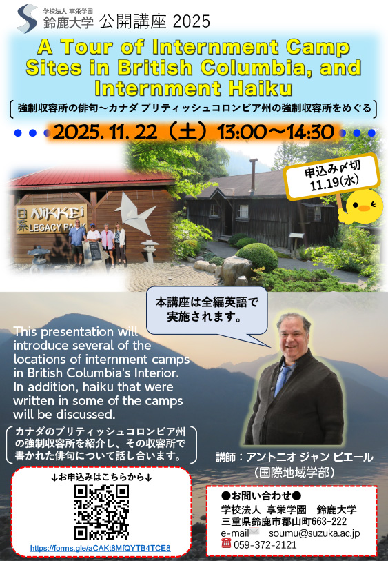 鈴鹿大学・鈴鹿短期大学部主催の2025公開講座の第8弾です。