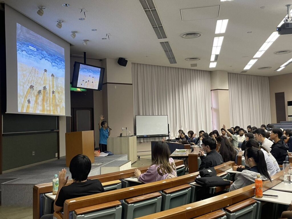 米川さんの話やウミガメネットワークの活動を通じて、ウミガメ保護の重要性を学ぶことができました。砂浜の減少、光害、プラスチックごみなど、人間の活動がウミガメの生態や命に深刻な影響を与えている現状を知り、学生たちは心が痛むと同時に深く考えさせられたのではないでしょうか。また、地道な保護活動に感動し、海や自然を守るため、ごみを減らす、海岸清掃に参加するなど、自分たちにもできることから行動したいという意識が高まったと思います。
