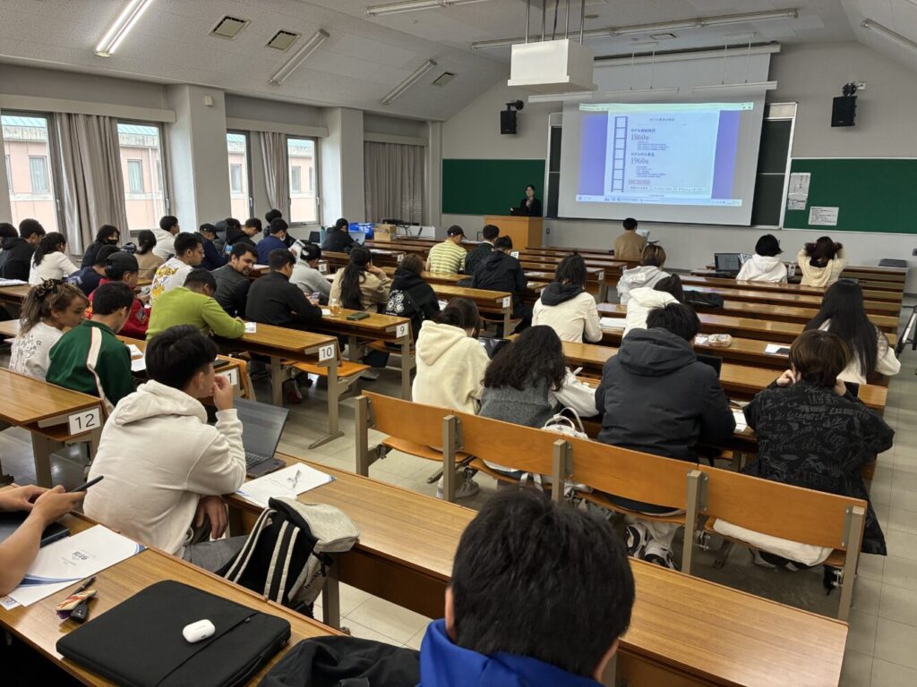 10月20日リゾートトラスト株式会社の落合様をゲストスピーカーに迎えました。同社は、会員制ホテルで売上高No.1であり、そのユニークな会員権ビジネスモデル、顧客からの信頼に基づく営業等について説明がありました。また、なぜ地産地消を進めるのか、地域との関わりを重視することの重要性を学びました。給与、福利厚生等が優れている同社に対し、関心が深まった学生が多く認められました。