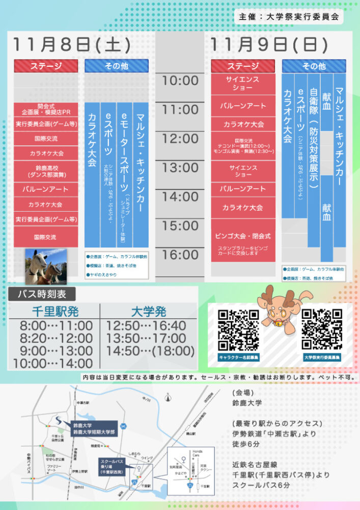 2025年11月8日(土)・9日(日)は鈴鹿大学で「鈴大祭」が開催されます!