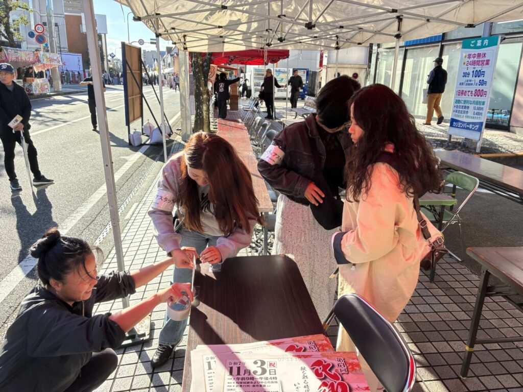 本学のボランティア留学生3名は、祭りの開始前から準備をすることの重要性を認識し、市内各種団体は勿論、滋賀県、福島県、兵庫県等、県外の多くの方の協力で祭りが成り立っていることを学びました。