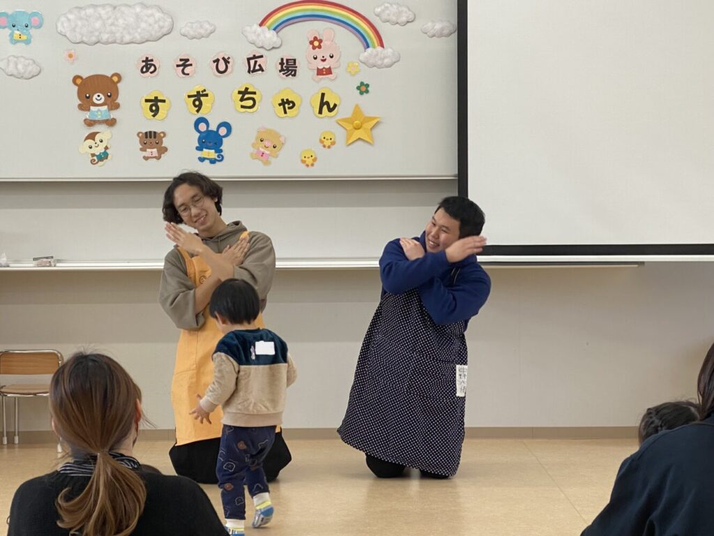 子育て支援事業「あそび広場すずちゃん」を開催中です。11月最後の学生企画は、3年生の南谷ゼミと石川ゼミが担当しました。「秋」をテーマに、歌に合わせてどんぐりの入ったマラカスを鳴らして音を楽しんだり、学生の振りに合わせて身体を動かしたりして楽しみました。最後は「いもほりバス」の大型絵本を楽しみました。今回は大学教員ミニ講座として、石川拓次先生より「運動遊び」についてお話しをいただき、盛りだくさんの回となりました。参加者からは、「学生さんが優しく接してくださり、子どももすぐになついていてありがたかったです!」「学生さんたちが一生懸命で、これからも頑張って素敵な先生になってもらいたいです」等のご感想をいただきました。 #鈴鹿市 #鈴鹿 #最高に住みやすいまち鈴鹿