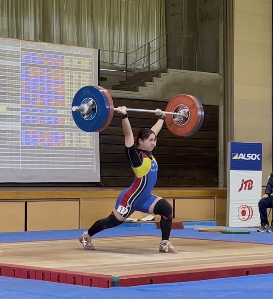 競技前半のスナッチでは82kgを記録し、上位選手との差5㎏を追う展開となりましたが、後半のジャークで111kgを成功し、トータル193kgとする力強いリフトで、一気に逆転する大逆転劇を演じ、初優勝を勝ち取りました。