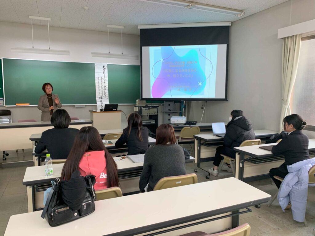 小学校教員養成課程の最終科目となる「教職実践演習(小)」の最終回(1月21日)に、昨年度の三重県小中学校校長会会長の林康子先生にお越しいただき「先生になる皆さんに今伝えたいこと」という題でお話をしていただきました。教壇教員として、校長として、また現在の学校図書館にかかわるお仕事の豊かなご経験をもとに、小学校教員としてまた社会人としてどのように生きていくかについてお話をしていただきました。学生からは「本講義を通して、初めて担任する子どもたちとの一年は、教師にとって生涯忘れられないものになるという言葉が強く心に残りました。子どもたちの成長する姿に立ち会えることは、何にも代えがたい感動であり、これから教師を目指す自分にとって大きな励みとなりました。」といった声が上がりました。